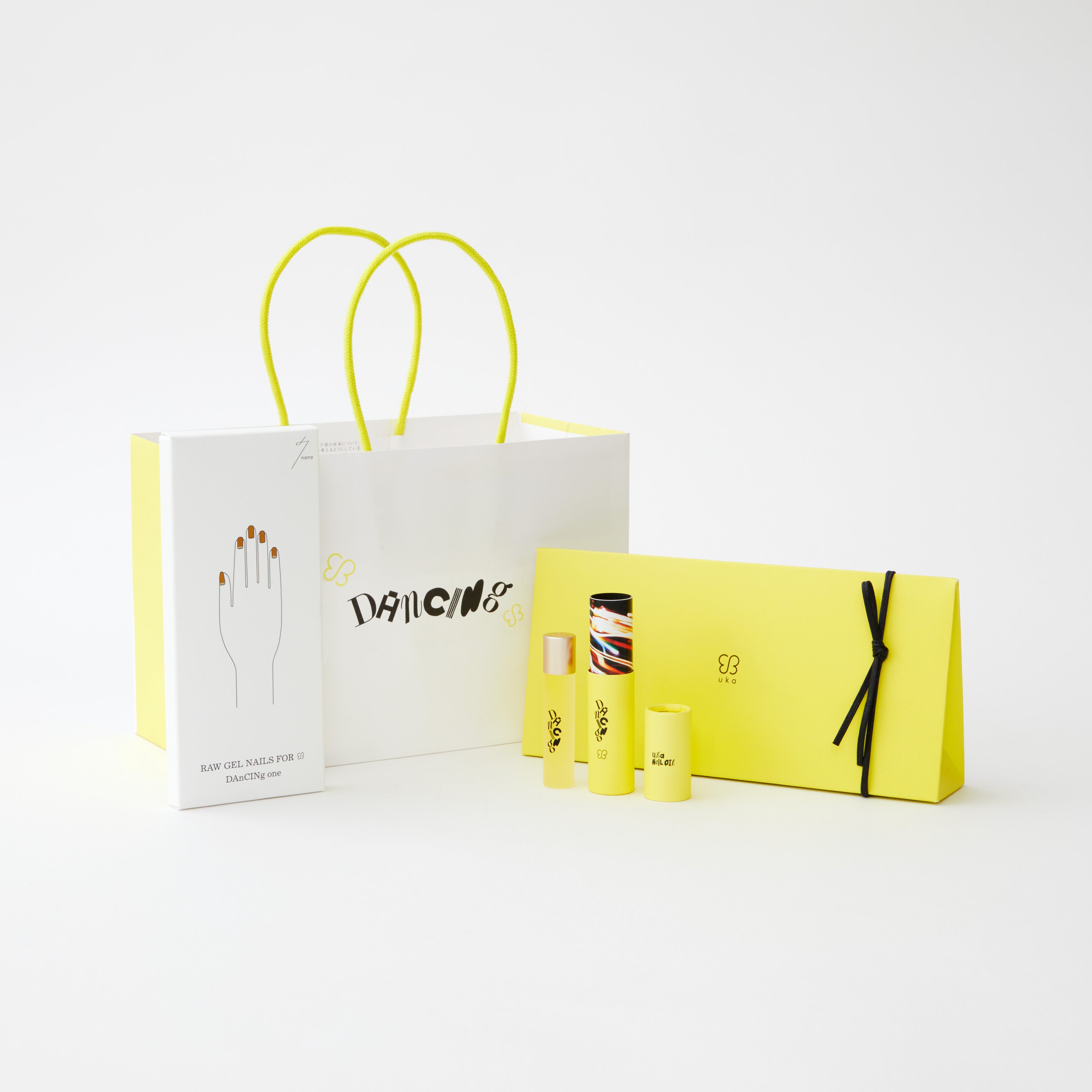 パッケージは、イラストレーターのSHOGO SEKINE氏に。ウカスタマイズの2種類のシールに続いて第3弾となる今回は、踊りだしたくなるような気分に合わせてフォントから紙筒までデザインをお願いしました。紙筒は香りとテーマに合わせてイエローにし、内筒はクラブのフロアで使用されるレーザービームをイメージ。ホリデーコレクションのための限定ショッパーも。