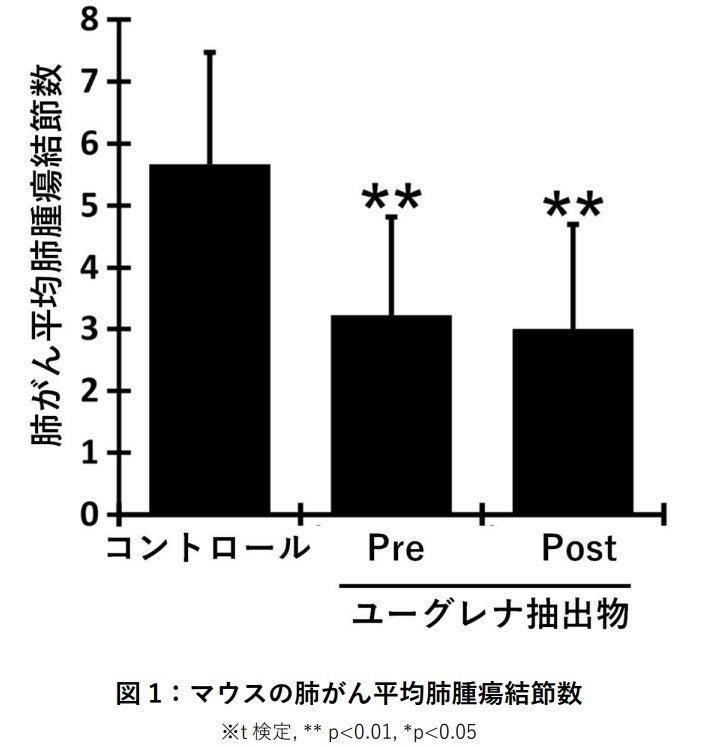 ユーグレナ抽出物の経口摂取は肺がんの増殖を抑制しました