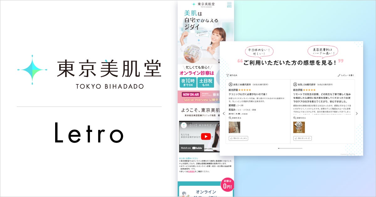 企業のマーケティングDXを支援するアライドアーキテクツ株式会社(東京都渋谷区、代表取締役社長 CEO:中村壮秀、証券コード:6081)でSaaS事業を展開するプロダクトカンパニー(プレジデント:村岡弥真人)は、株式会社LATRICO(東京都港区、代表取締役CEO:濱口 友彰)に対し、当社のCVR最適化プラットフォーム「Letro(レトロ)」の提供を開始しました。LATRICOが運営するオンライン美肌相談プラットフォーム「東京美肌堂」の申し込みサイトにLetroを活用してレビューを掲載したことで、予約率が従前比38%増加しました。