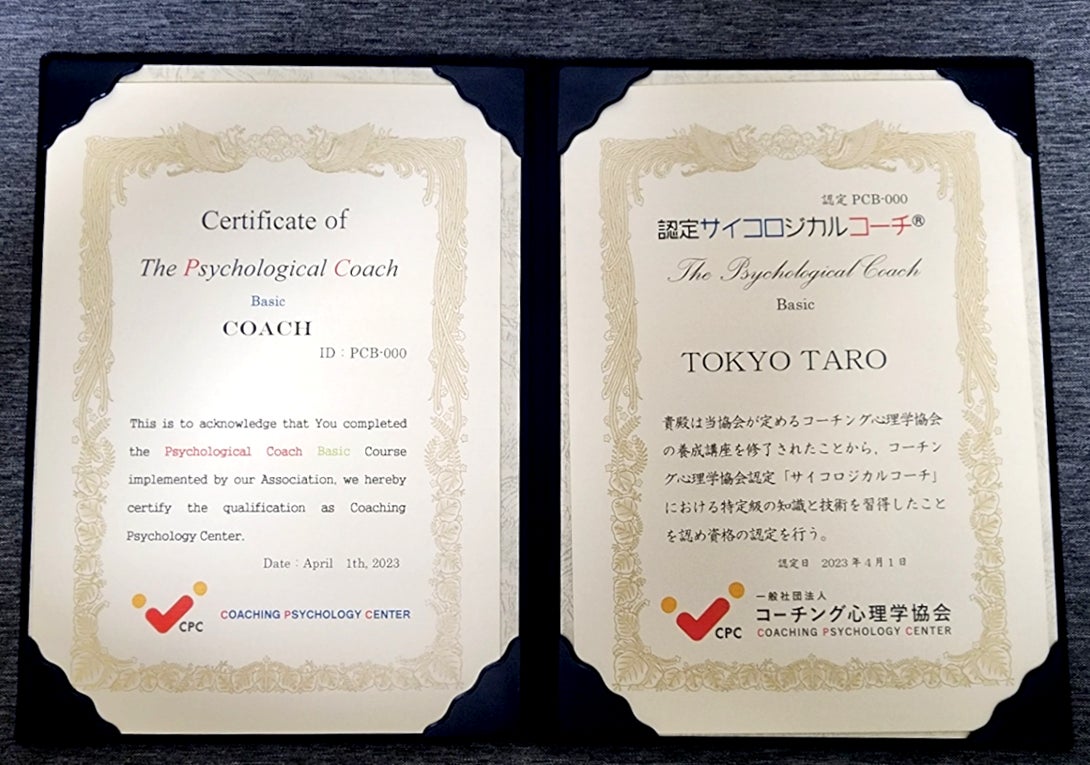 ※当ワークショップを修了されると 【認定サイコロジカルコーチ」(Basicコース)の資格が取得できます。サイコロジカルコーチ®は,特許庁公認で商標登録