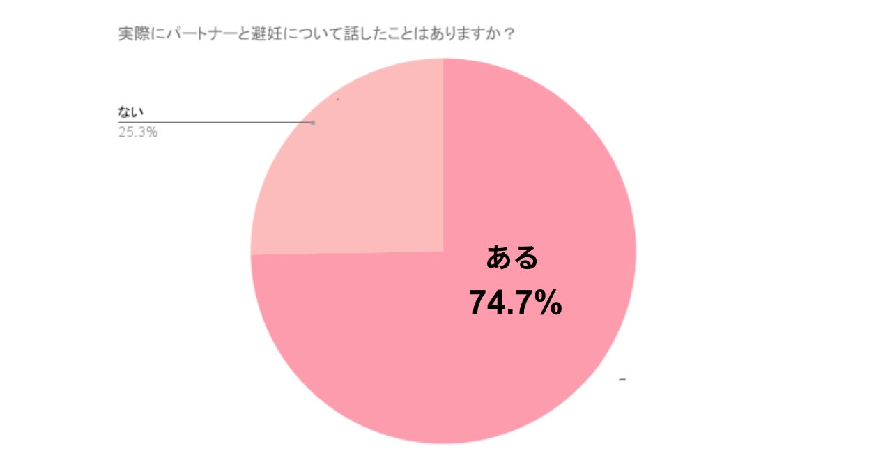「パートナーと避妊について話したいと思いますか?」という項目については、「話したい」と回答した方は約74%。一方で、「話したいけど話しづらい(22.4%)」と感じる方も2割以上を占めるなど、パートナー間で避妊に関するコミュニケーションに課題を抱えている層も一定数存在します。