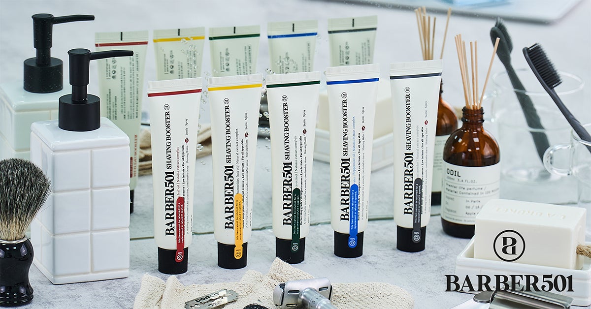 高級理容室でのスキンケア体験を自宅でも気軽に取り入れられるよう、使い心地や価格を実用的に落とし込んだ、韓国発のメンズスキンケアブランド『BARBER501』。髭剃りの際に使用するシェービングクリームや、化粧水、デリケートゾーン用のクレンザーなど、さまざまなメンズ用アイテムを展開しています。
