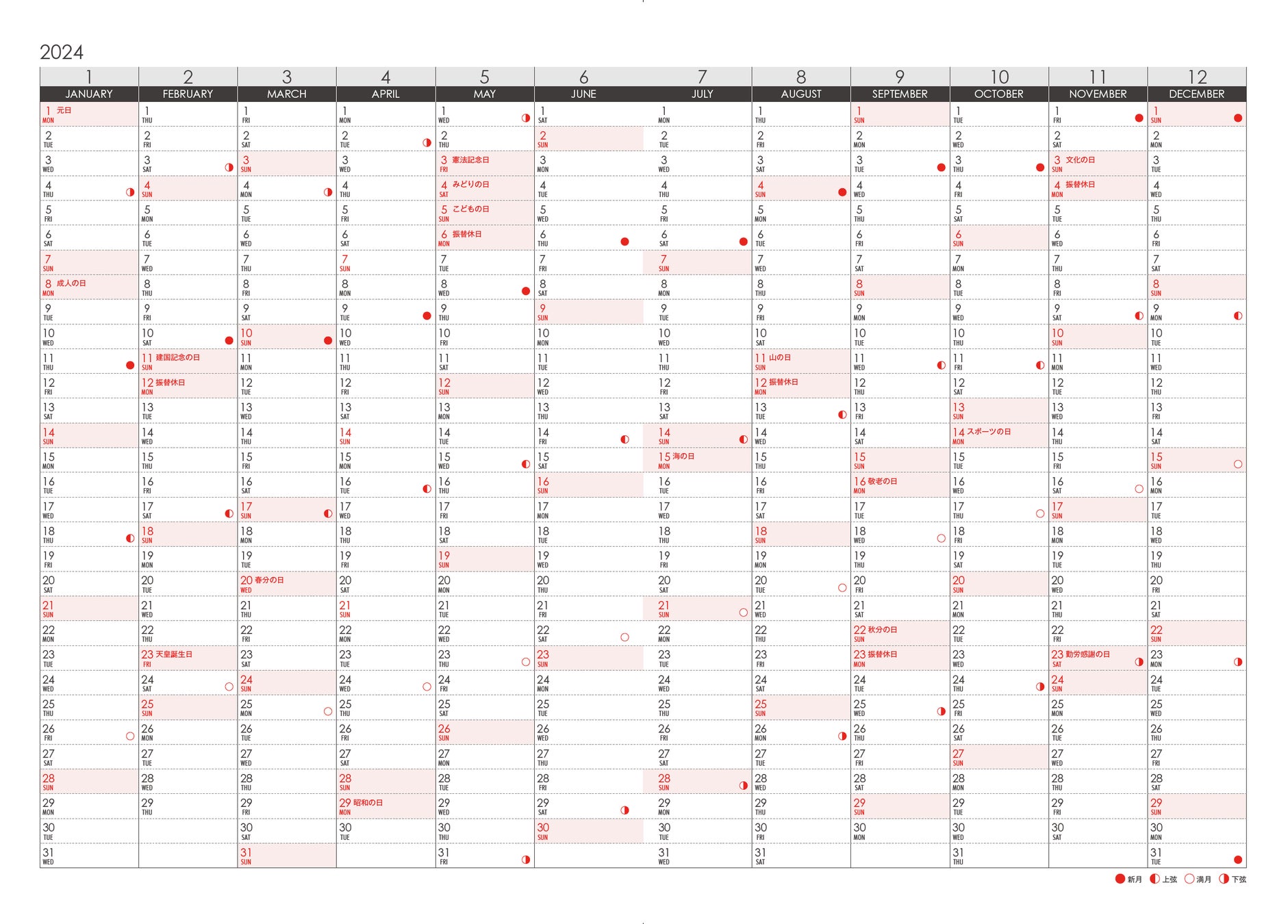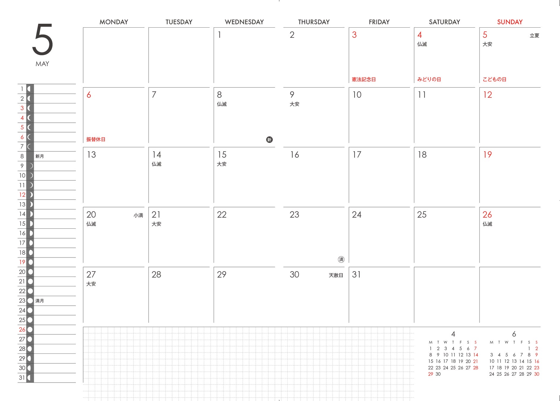 月間ページ(月齢・二十四節気・天赦日掲載)