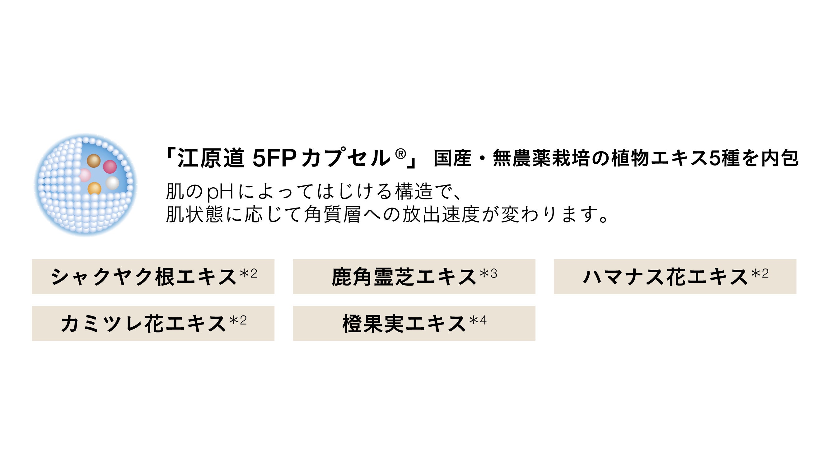 江原道 5FPカプセル®が肌に浸透*¹し、 肌pHにあわせて内包成分を放出。