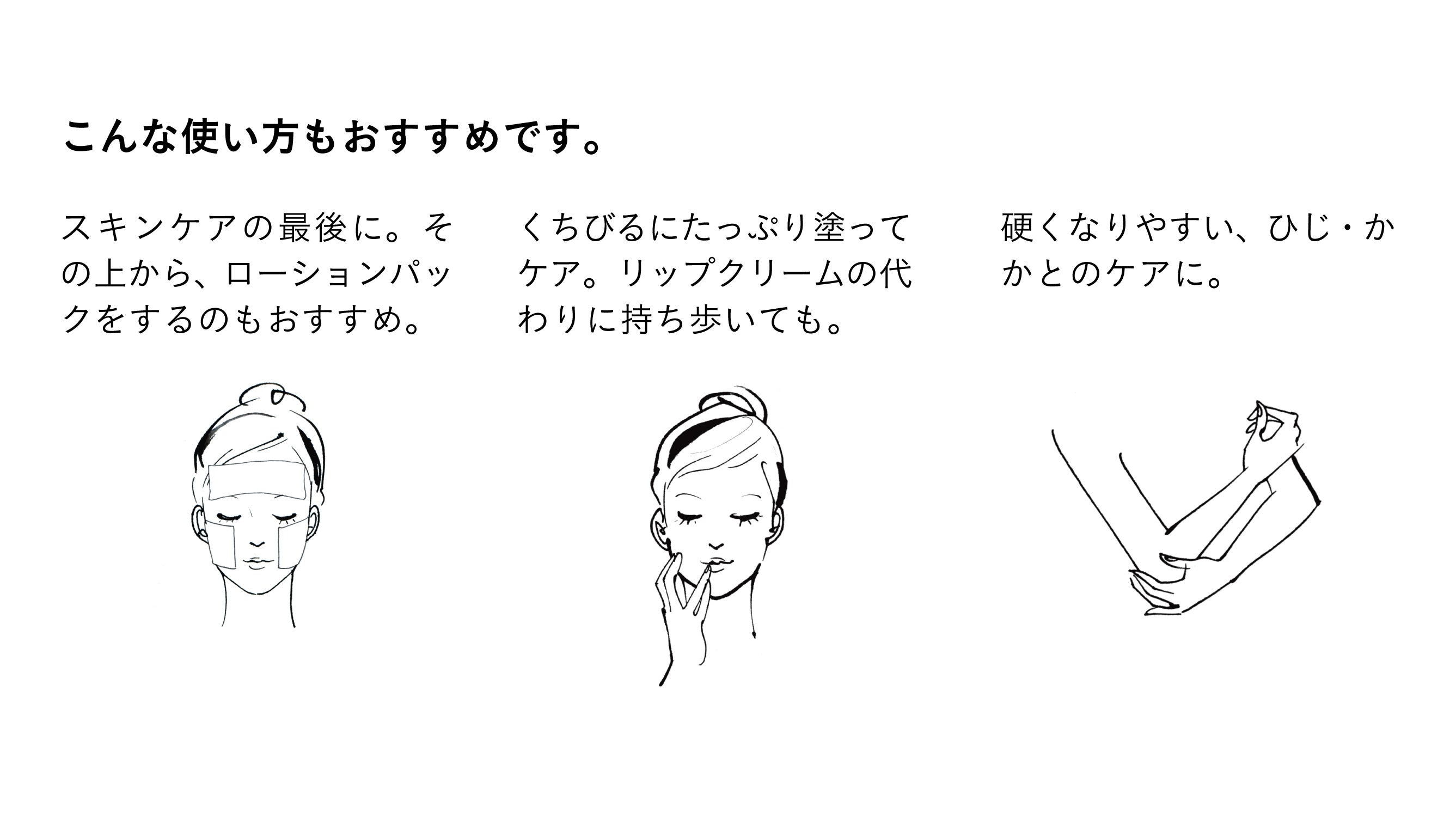 「The BALM」は、製品そのものが美容オイルである「天然エモリエントオイル」でできていると言っても過言ではありません。その主となるベースオイルに、高い保湿力を持ち、肌やくちびるをしっとりとしなやかに整える“天然のミツロウ”を採用しました。