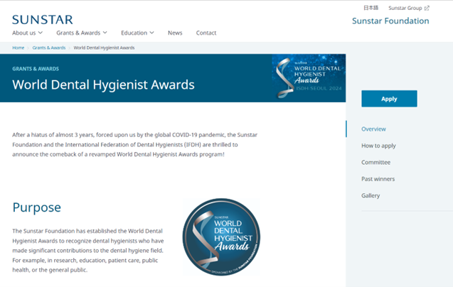 URL :https://www.sunstar-foundation.org/en/awards/world-hygienist