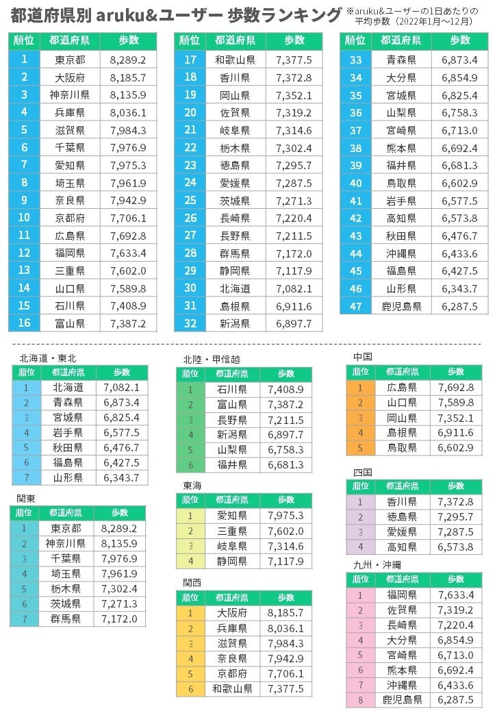 <参考>都道府県別 aruku&ユーザー 歩数ランキング
