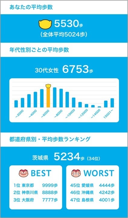 今回の「都道府県別歩数平均機能」により、同じ地域に住むユーザーの歩数を確認しながら楽しく歩いてほしいと考えています。