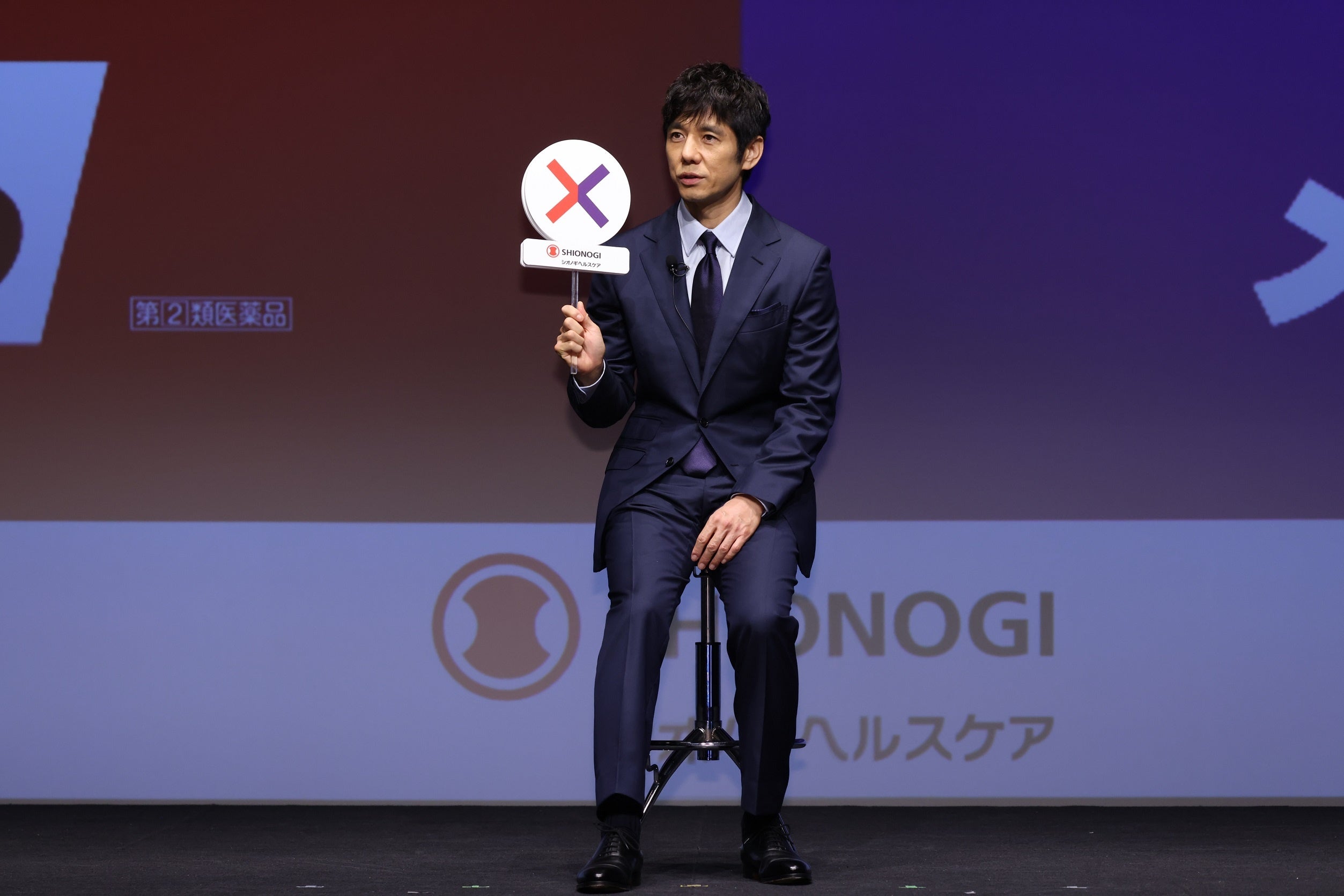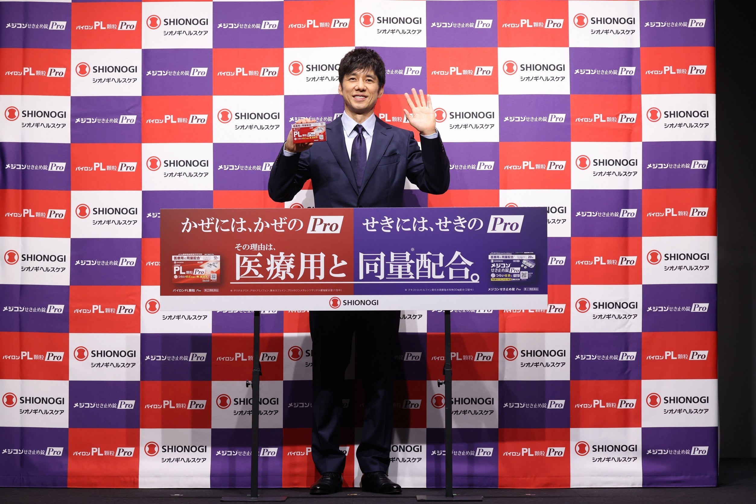 発表会では、シオノギヘルスケア株式会社 経営戦略部 部長 加曽利一樹より、かぜ薬市場の状況とセルフケアについての説明ののち経営戦略部 ブランド戦略グループ 楠本あきのより、ブランドメッセンジャー起用意図について発表がありました。後半では、新CMに出演している西島秀俊さんにご登壇いただき、ブランドメッセンジャー就任式を行いました。また、新TVCMのお披露目やCM撮影時のエピソードについてお話しいただいたほか、ご自身の体調管理法についてのエピソードトークを交えつつ、かぜにまつわる〇×クイズにも挑戦していただき、会場を盛り上げました。