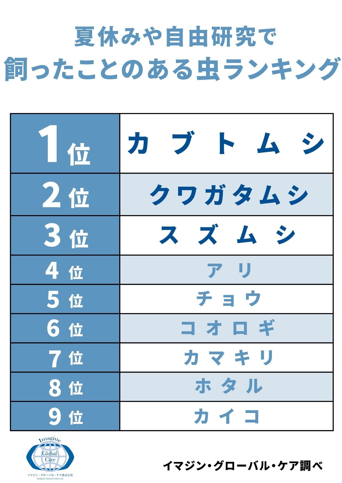 全国の10〜80代の男女949名を対象に夏休みや自由研究で飼ったことのある虫ランキングを調査!同時に虫に対する意識調査も実施。