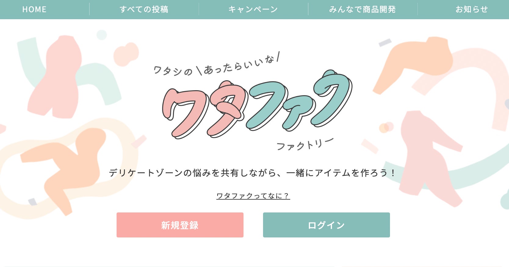 ワタファクでは、同じ悩みをもつ人たちと、デリケートゾーンのお悩みについてコメント投稿やコンテンツで理解し合うとともに、製品開発会議などを通じて、ユーザーのみなさんと悩みをケアする商品を共創していきます。