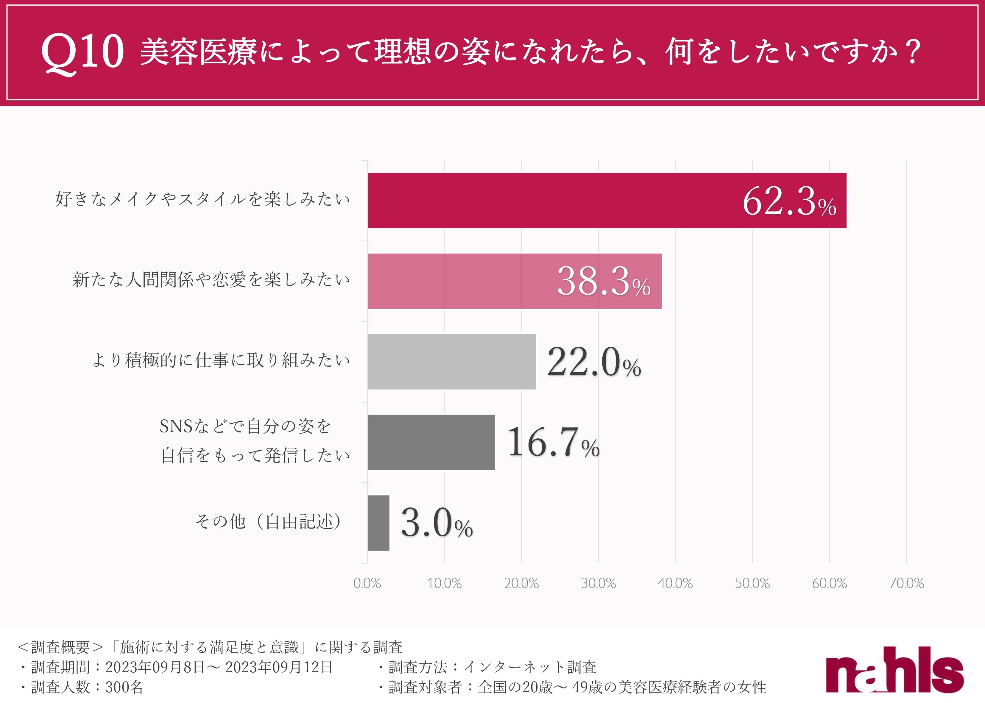 「好きなメイクやスタイルを楽しみたい(62.3%)」「新たな人間関係や恋愛を楽しみたい(38.3%)」といった回答が集まりました。
