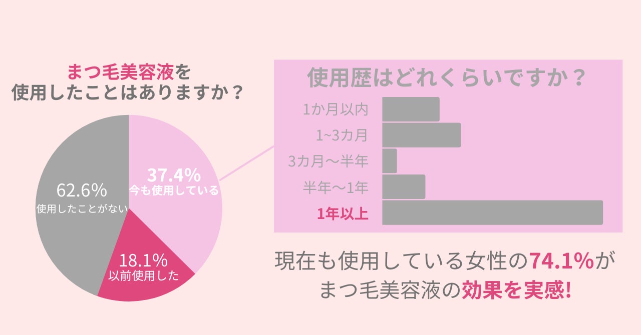 ●37.4%の女性は現在、まつ毛美容液を使用中。そのうち74.1%が効果を実感!