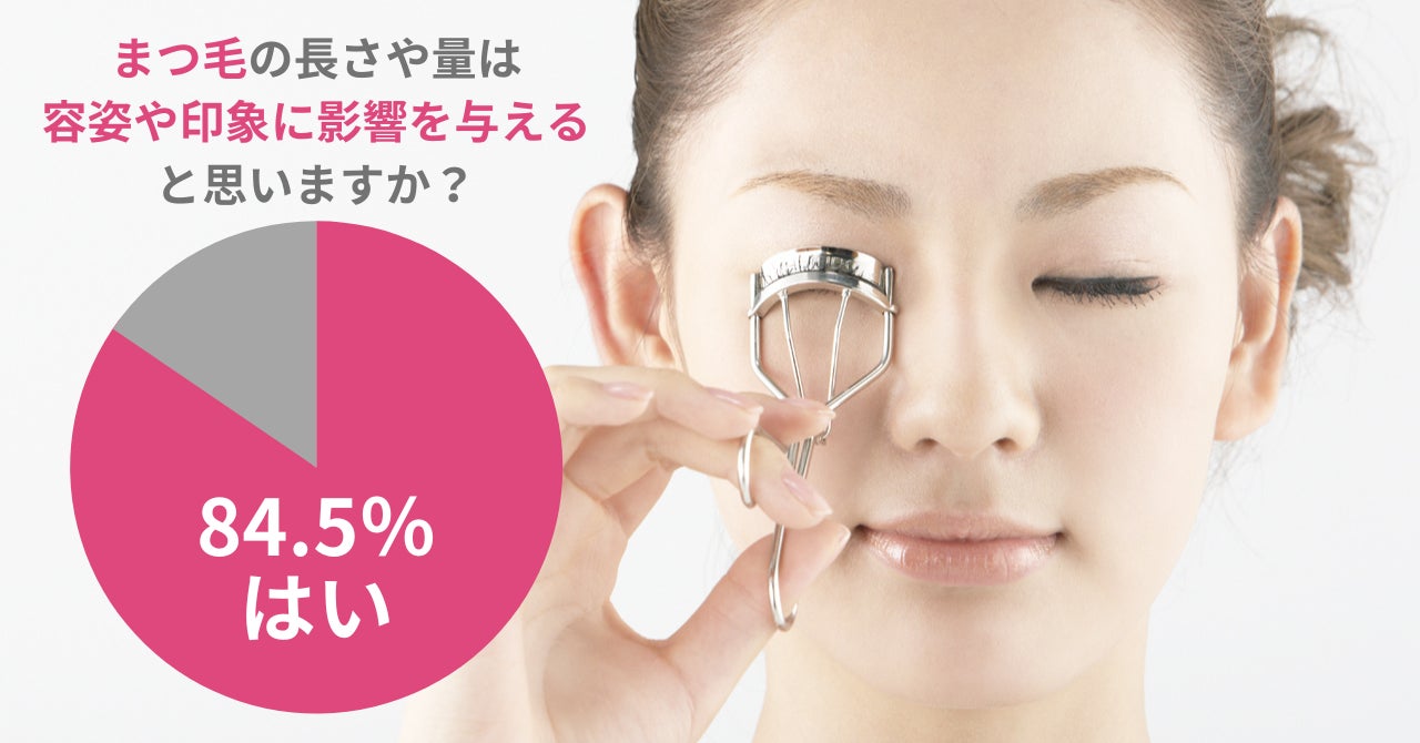 ・84.5%の女性がまつ毛の長さや量は、容姿や印象に影響を与えると考える