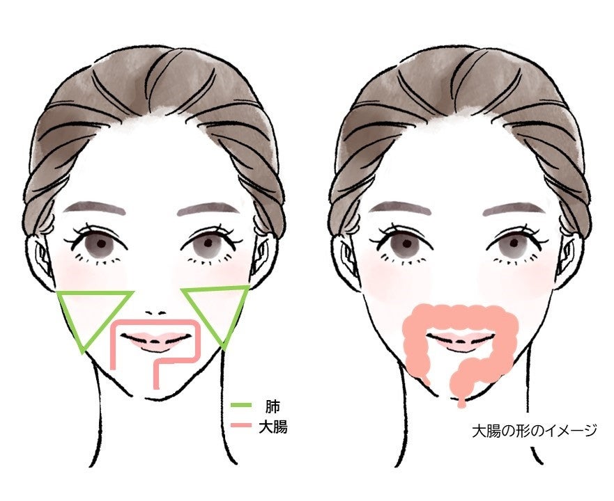 足裏マッサージなどで刺激する反射区は顔にもあります。顔の中に臓器があると考えるとよいでしょう。
