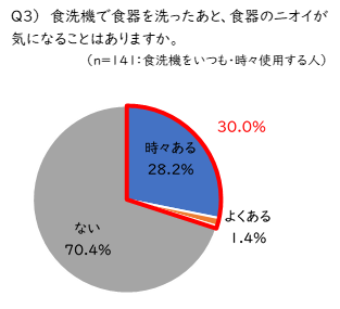 Q3) 食洗機で食器を洗ったあと、食器のニオイが気になることはありますか。