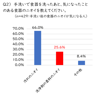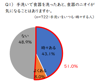 Q1)手洗いで食器を洗ったあと、食器のニオイが気になることはありますか。