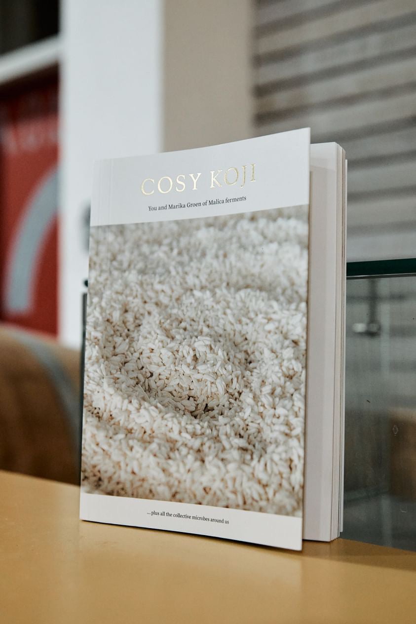 2021年に限定出版された、茉莉花と世界の発酵家たちによるビジュアルコラボレーションです。麹を題材とし読み手の感覚に訴えかけたその幻の麹本は、現在内8冊が移動図書として愛好家たちの間で貸し出され、八つの大陸でそれぞれの移動を続けています。その本が移動を続けるように、Alexanderと茉莉花は麹を取り巻く味噌、醤油、日本酒、甘酒、みりんなどの日本の麹発酵醸造方をベースに、茉莉花がヨーロッパで10年以上かけ探求してきたユニークな製法を生かした発酵醸造調味料と、長年のプラントベースキュイジンシェフとしてのAlexanderの巧みな技術と経験を掛け合わせ、新鮮な調理法とメニューを提案し続けています。