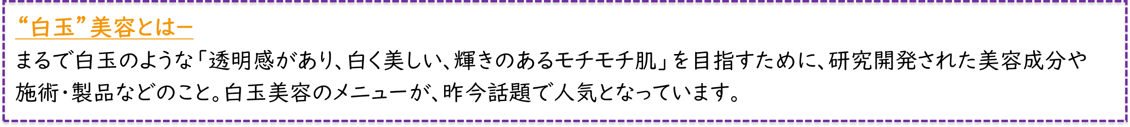 ※1 年齢に応じて肌へうるおいと弾力を与えるケアのこと ※2 白玉のようなキメが整ったツヤのある肌のこと