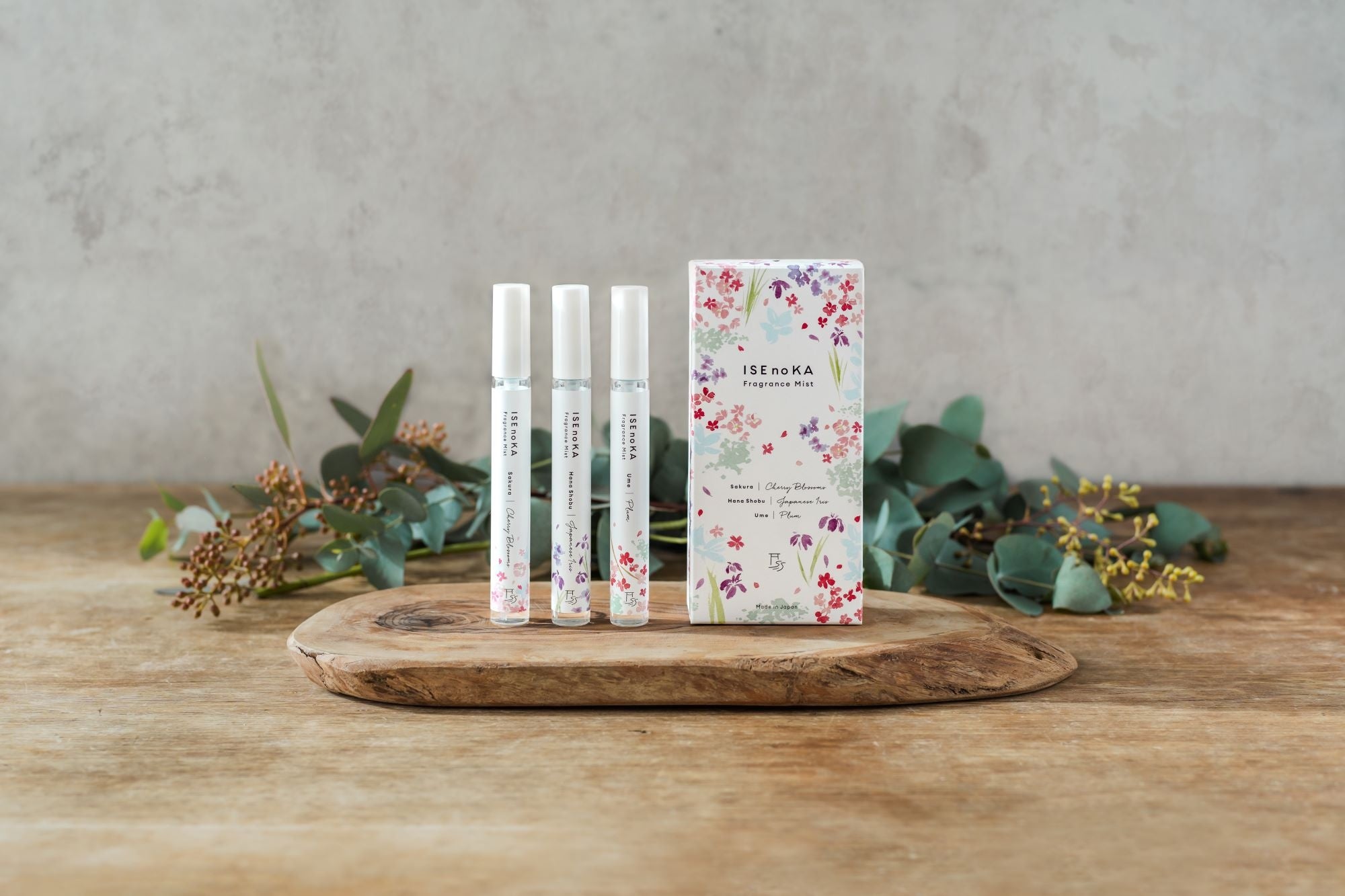伊勢神宮を流れる五十鈴川から採水した清らかな水でつくったフレグランスミストです。つけた瞬間にやさしく香りが広がり、心身ともに浄化されていくような気分になります。伊勢に咲く美しい花から、どこか儚げで可憐なイメージした3種の香りをお届けします。保湿成分も配合、ノンアルコール、無着色、鉱物油フリー の肌に直接使用できるフレグランスミストです。メイクポーチにも入りやすいコンパクトな形状で、お伊勢参りのお土産にも最適です。