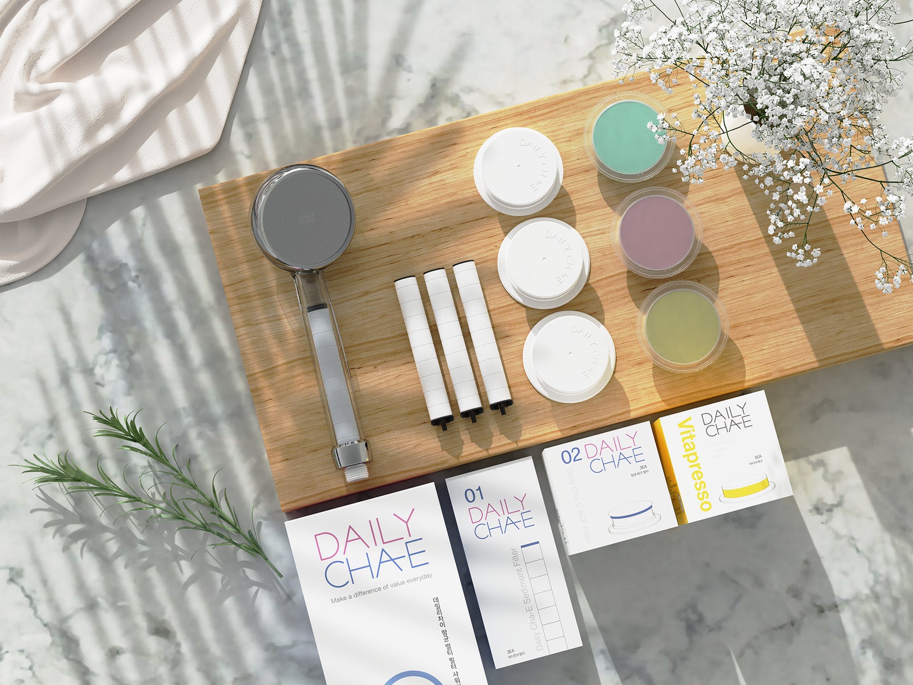 DailyCha-E は、フィルター付きシャワーヘッドで、生活に毎日の「違い」(韓国語で Cha-E) を生み出します。