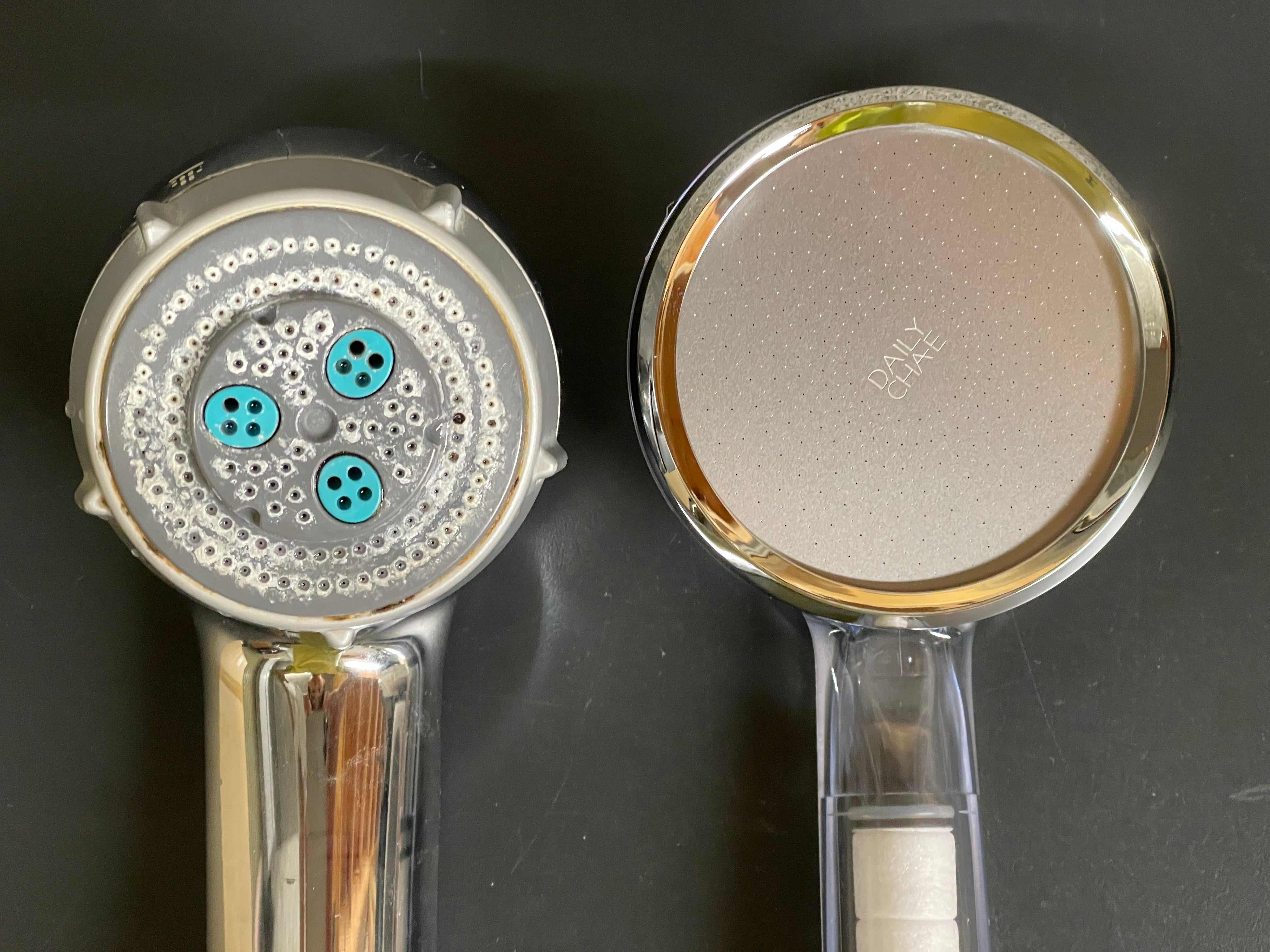 20年使ったシャワーヘッドを外したら汚れが(左)・・・・