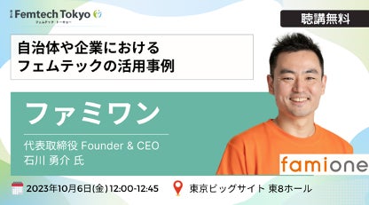 当イベントの特別講演にて当社石川は、10月6日(金)12時〜12時45分に自治体や企業に向け「自治体や企業におけるファムテックの活用事例」をテーマに女性のヘルスケア・メンタルケアサポートサービスの自治体導入事例をお話します。