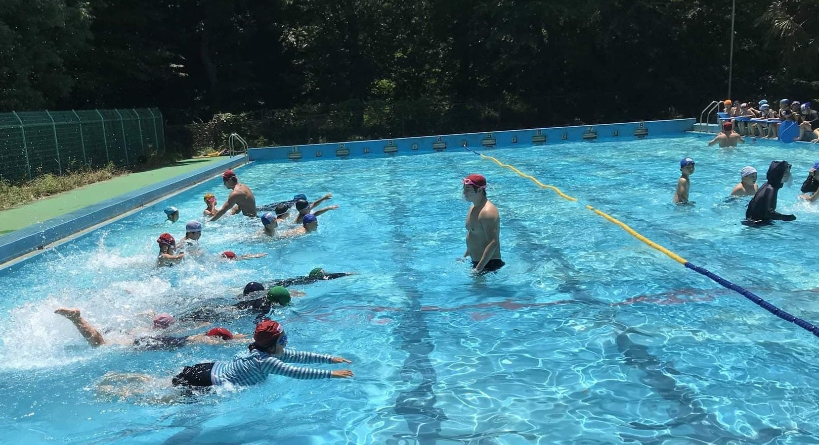児童に向けた水泳授業の様子