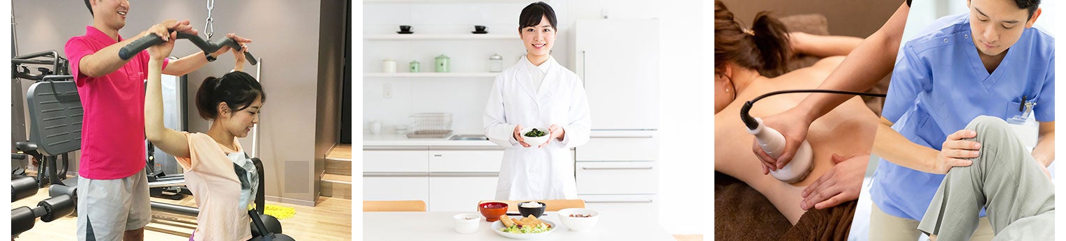 運動指導、食事指導、エステ/ボディケアによる『3プロメソッド』で、パーソナルトレーニングが結果に繋がります。プロのトレーナーによる運動指導は勿論のこと、業界でも稀な国家資格である管理栄養士が直接お客様とコミュニケーションをとり、それぞれの生活に合わせておこなう食事指導、そして更に体を美しくするためにプロのエステティシャン/整体師によるエステ/整体の3分野。3つの分野の相乗効果で、お客様の目標を叶えます。