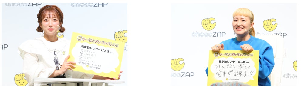 さらに、アミューズメントジムに生まれ変わった「chocoZAP」の新サービスを体験したお二人には、「あったら嬉しい新サービスは?chocoZAPプレゼンバトル」と題して、それぞれが考える「あったら良いと思うサービス」をプレゼンしてもらいました。