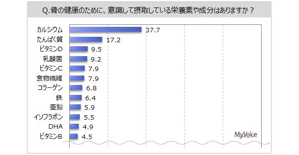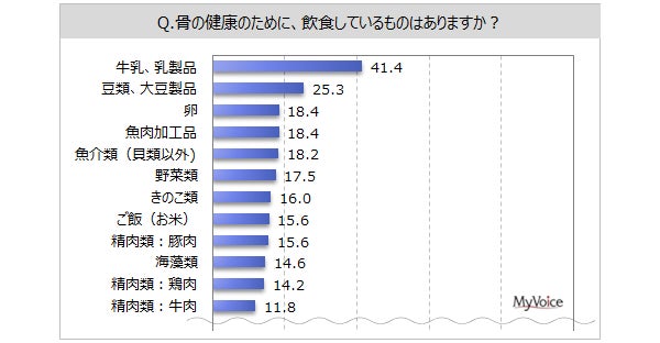 https://myel.myvoice.jp/products/detail.php?product_id=30210 上記設問の他に、「骨の健康のために実施していること」も聞いています。 |