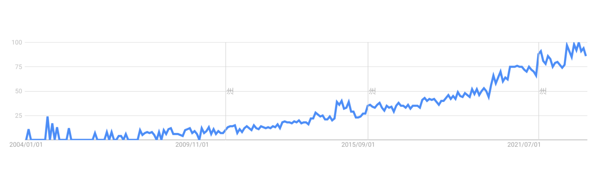 厚生労働省による患者調査による歯科矯正初診患者数は、2019年から2022年の3年間で3.6倍に増加(※1)しています。さらに歯科矯正の中でも、「マウスピース矯正」という単語のGoogle検索数は2004年頃と比較して8-9倍程に伸びています。
