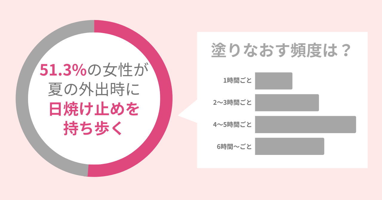 ●51.3%の女性が日焼け止めを持ち歩く、4~5時間ごとに塗りなおす人が多い