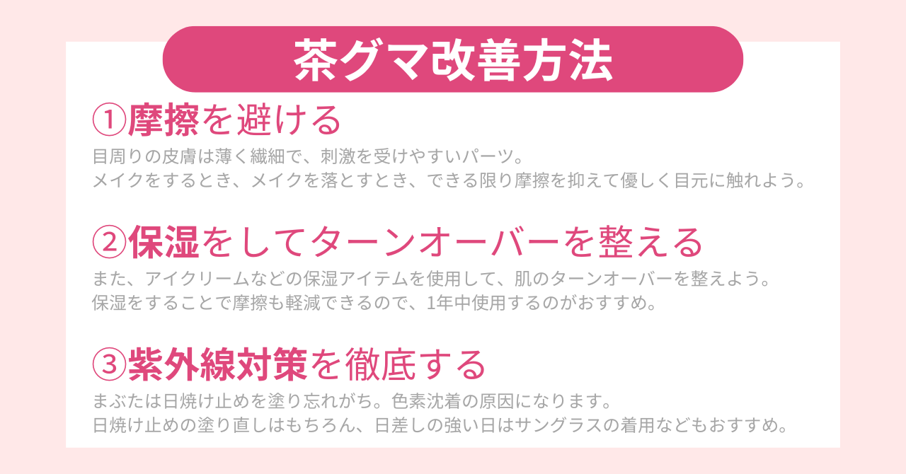 茶グマは簡単には改善しません。根気よく、上記の方法を継続しましょう。