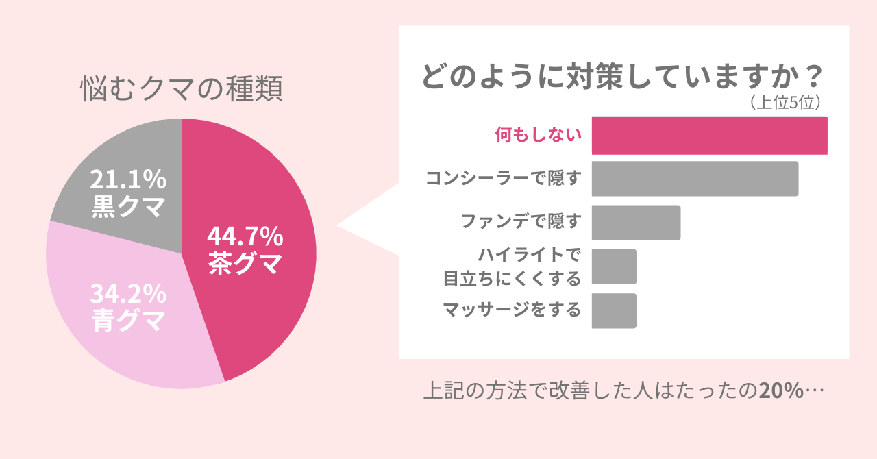 ・クマの対策をしていない女性が最も多い、続いてコンシーラーで隠す女性が多い