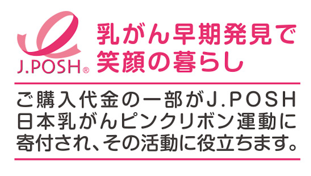 パッケージ裏面に、ご購入代金の一部がJ.POSH日本乳がんピンクリボン運動に寄付されることをお知らせしております。