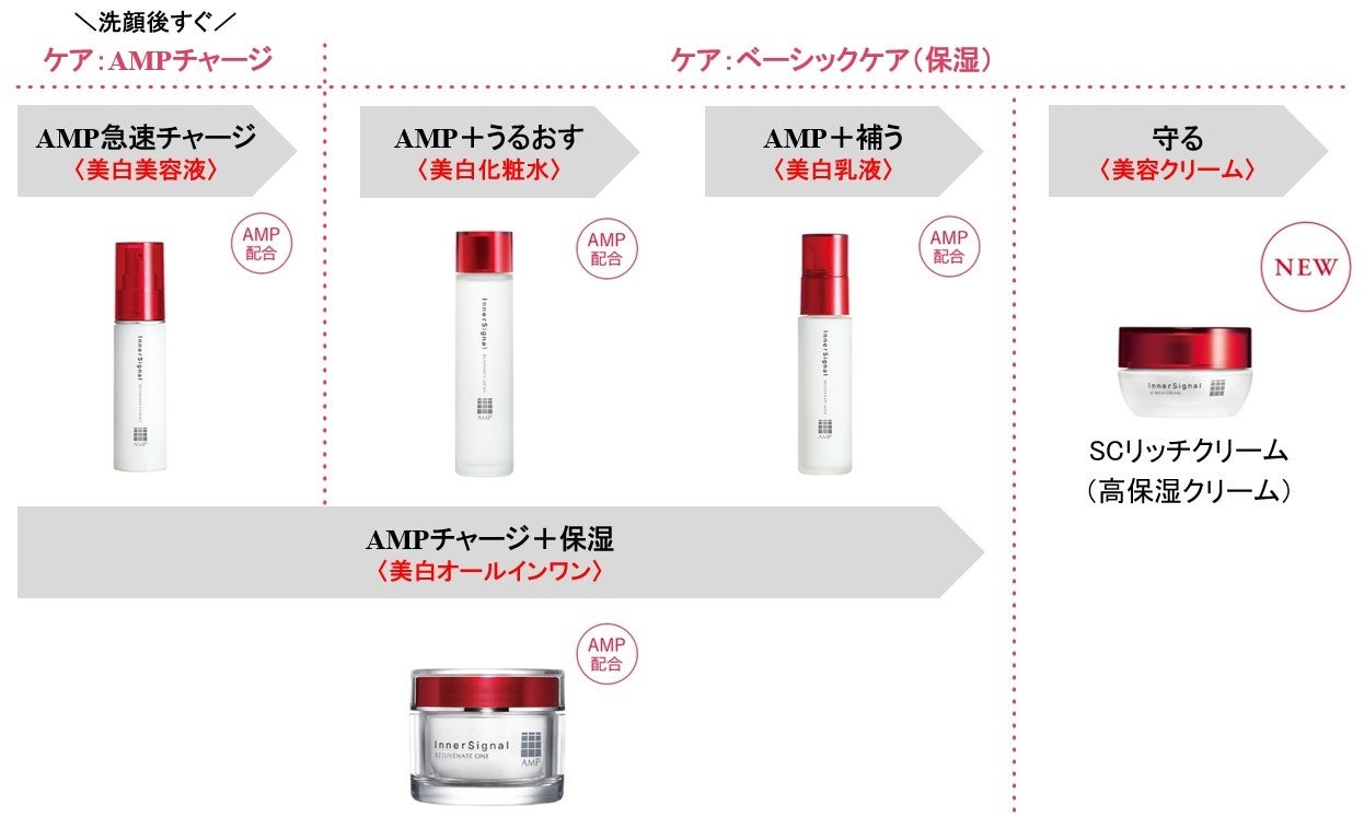 さらにインナーシグナルシリーズのAMPスキンケア*5の働きをサポートするフィニッシュアイテムとして、角層を保湿し整えることでターンオーバーをサポートし、ワンランク上のスキンケアを実現します。