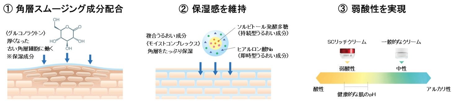 この度、新たに発売した「インナーシグナル SCリッチクリーム」は、上記3つのポイントにより、なめらかでキメのそろった上質な肌へと導きます。