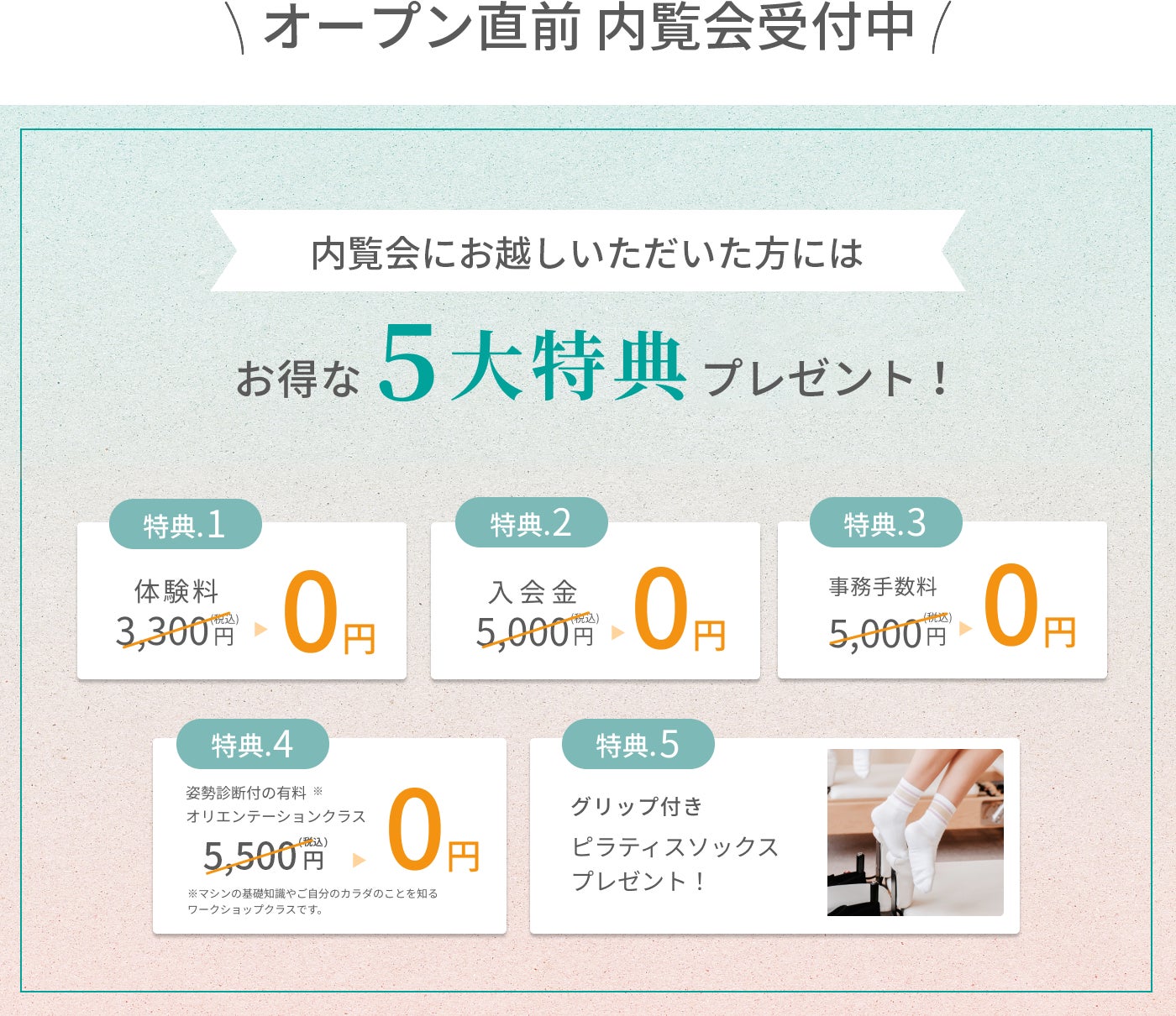 お得にマシンピラティスを始めたい方、通ってみたいけど勇気が出ない方、お友達と通ってみたい方、是非手ぶらで内覧会にお越し下さい。