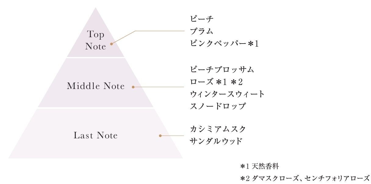 みずみずしい甘さのピーチやプラムと弾けるピンクペッパーが、きらめくホリデーシーズンを予感させる。