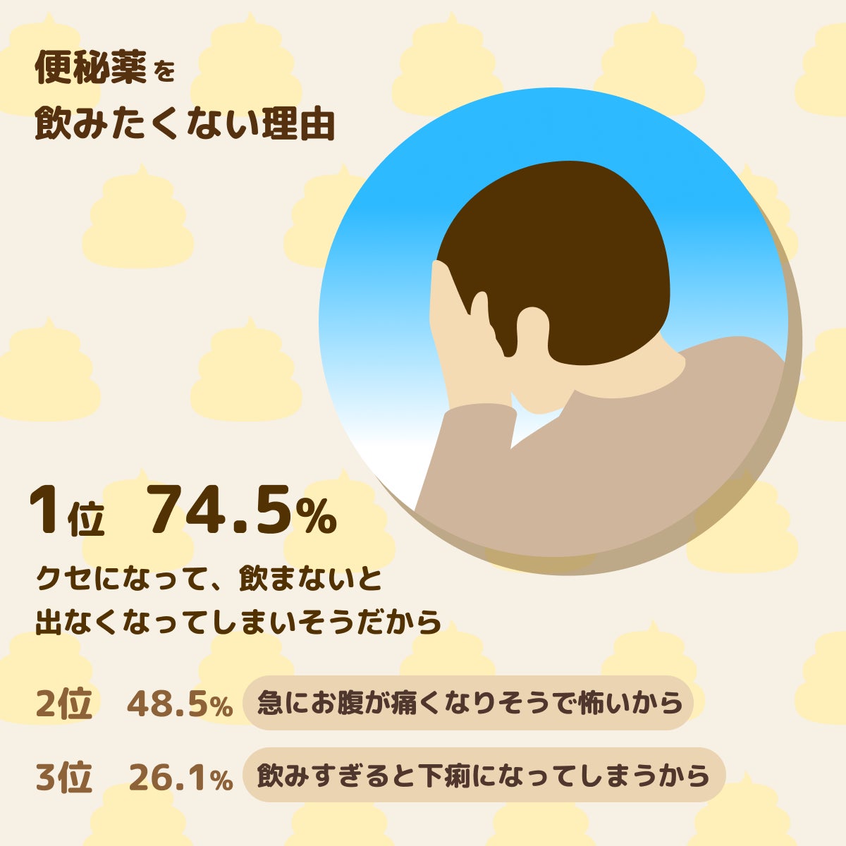 ・理由としては、1位「クセになって飲まないと効果が薄れそう」が74.5%、2位「急におなかが痛くなりそう」