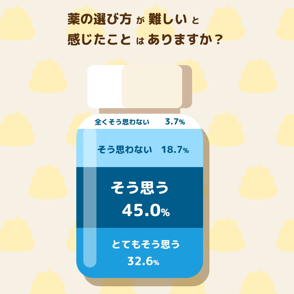 ・「便秘薬の選び方が難しいと感じたことがありますか」という質問に対して「とてもそう思う」が32.6%、