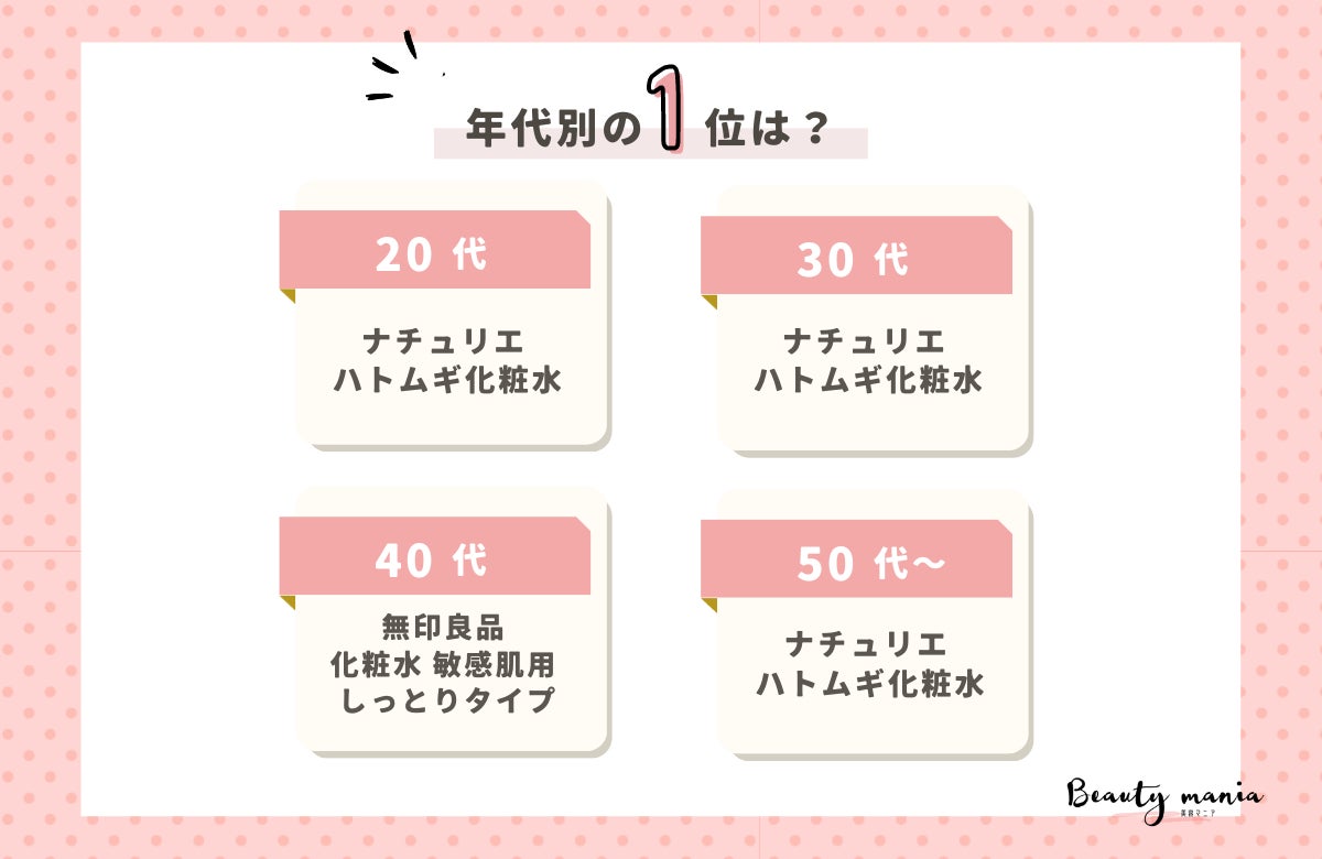 50代以上の1位『ナチュリエ ハトムギ化粧水』(33.3%)