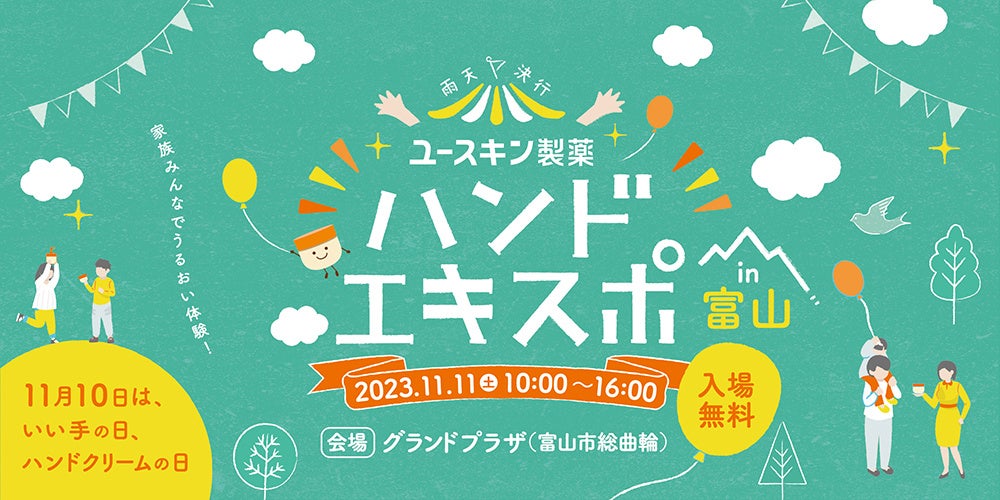 ユースキン製薬株式会社(本社/神奈川県川崎市 代表取締役社長/野渡和義)は、ハンドケアの普及啓発のためのイベント「ハンドエキスポ」を、ユースキン製薬本社のある川崎で、2023年11月5日(日)に開催します。川崎での開催は2019年以来、4年ぶりとなります。