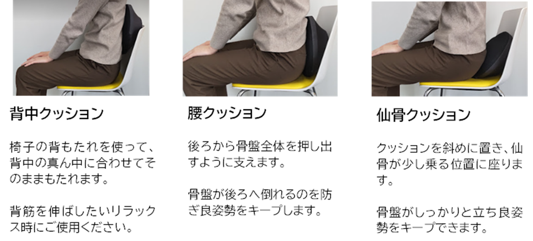 骨盤ストレッチ運動以外にも背もたれクッションとして使用可能です。