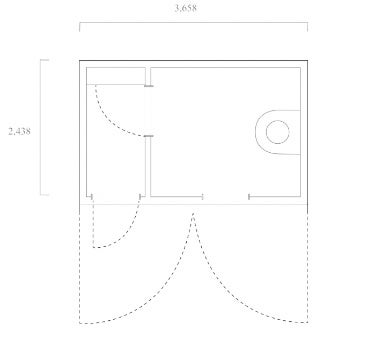 サイズ:全長2,438mm/全幅3,658mm(扉側)/全高2,591mm