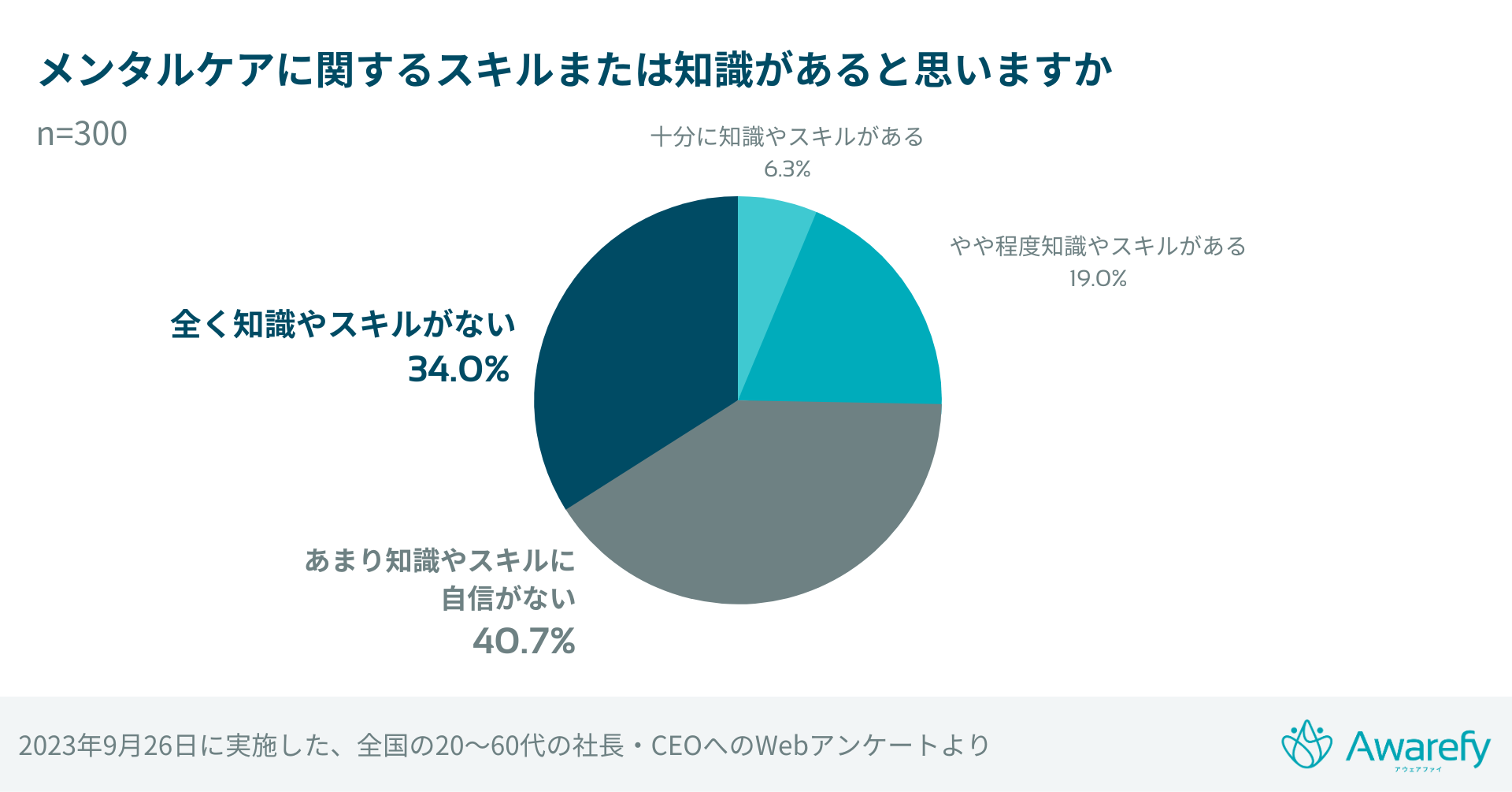 • 7割以上がメンタルケアに関するスキルや知識がないと感じている