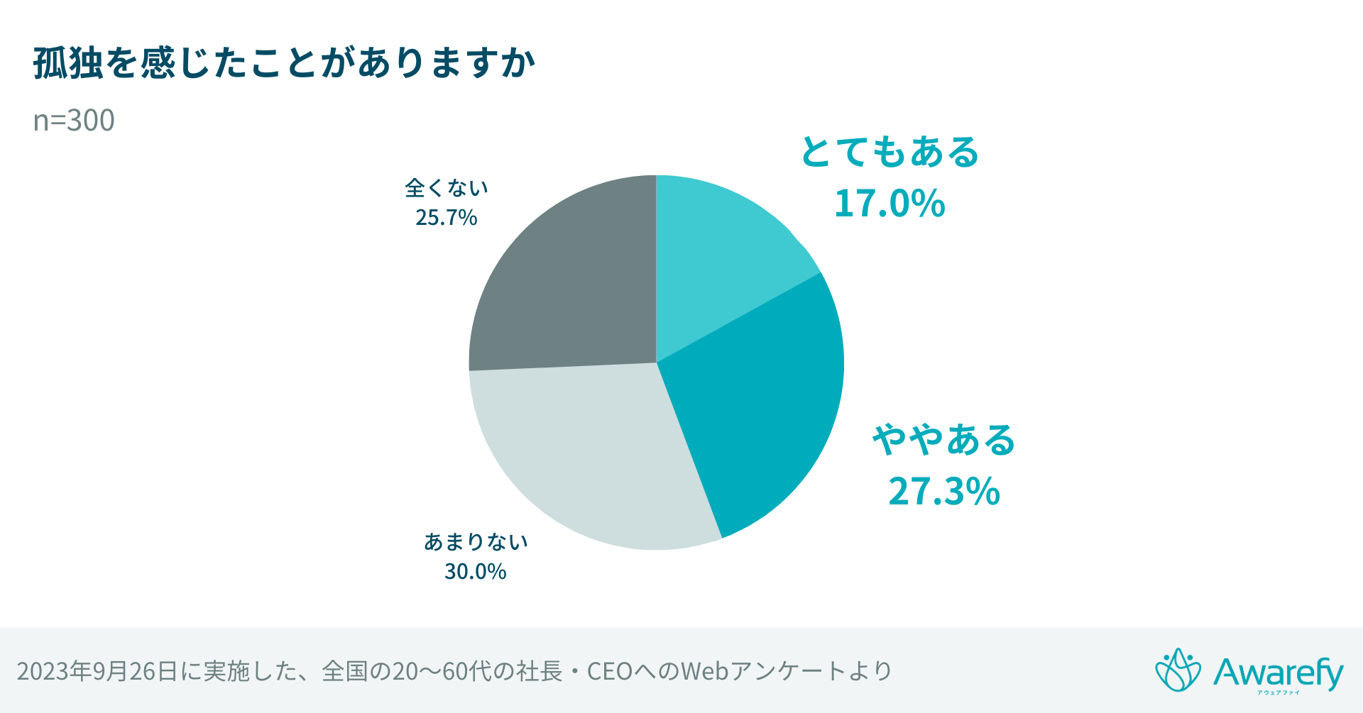 心の健康を支えるデジタル・メンタル・プラットフォーム「Awarefy(アウェアファイ)」を開発する株式会社Awarefy(本社:東京都新宿区、代表取締役CEO:小川 晋一郎、以下「当社」)は、10月10日の世界メンタルヘルスデーに合わせて、全国の経営者を対象に「メンタルケアに関するアンケート」を実施し、300名から回答を得ました。