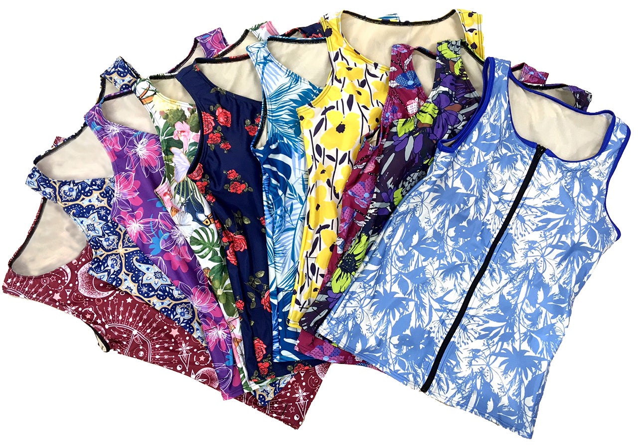 「レギンス柄100選」の開発背景と同じように、水着にも柄が他人と被りたくないという声があり、「水着柄100選」のサービスを2022年から開始しています。希望のトップスの形・サイズ、100種類の柄から自分好みの水着をつくることができる、水着のカスタムオーダーです。