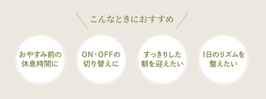 1日の終わりのリラックスタイムに寄り添い、すっきりした朝とすこやかな毎日をサポートします。